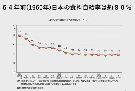 1960年当時、日本の食料自給率は約80%もありましたよね。それだけあれば、有事でも国民が飢えることはありません。