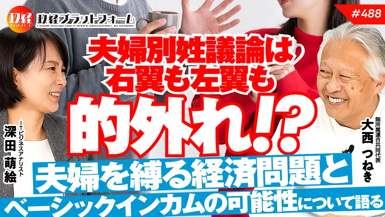 夫婦別姓議論は右翼も左翼も的外れ!?夫婦を縛る経済問題とベーシックインカムの可能性について語る 大西つねき氏 #488 公開済み 2025年10月25日 · 更新済み 2025年10月26日 【ご視聴はここをクリック】 【目次】00:00 1.オープニング00:39 2.無所属連合をどう組織化するか構想中04:12 3.婚姻制度についてどう思う?12:10 4.ベーシックインカムで人生自由になれる14:23 5.夫婦別姓についてどう思う?18:07 6.通称の拡大適用は犯罪の温床になる20:51 7.人間関係を国が定義することの本質を考える Visited 11 times, 5 visit(s) today