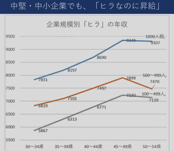 その中小企業というのが一つの問題で、100人以下の企業は確かにそうなんですよ。100人を超えると完全年功カーブがついてくるのですよ。