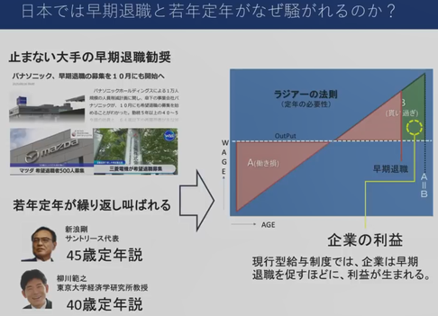 話が逸れましたが、そういうことだとご理解いただけましたよね。これは『日本型の給与が年齢に比例して上がりすぎる』ということを直さない限り永遠に続くということなのですよ。