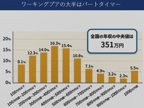 しかし、これはインチキで、たとえばひろゆきさん(西村博之氏)も平気で使い、政治家も平気で使うのです。『馬鹿じゃないの?』と思うのですが、これはパートタイマーが入っているのですよ。200万以下は主婦、高齢者、学生のパートタイマーがほとんどです。