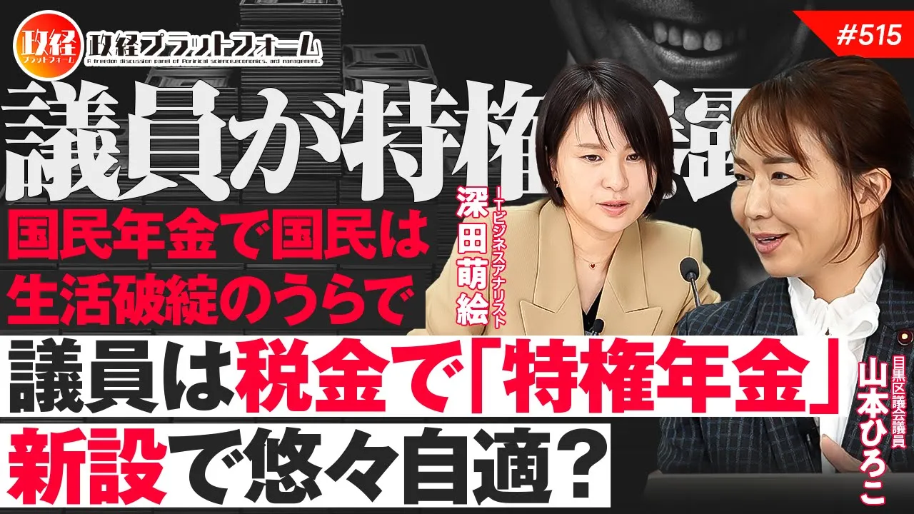 【議員が特権暴露】国民年金で国民は生活破綻のうらで、議員は税金で「特権年金」新設で悠々自適? 山本ひろこ氏 #515