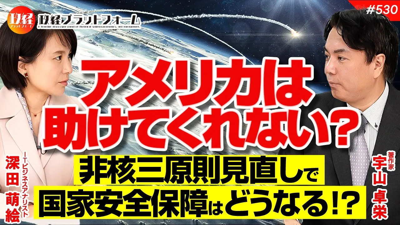 アメリカは助けてくれない?非核三原則見直しで国家安全保障はどうなる!? 宇山卓栄氏 #530 公開済み 2025年12月6日 · 更新済み 2025年12月7日 【ご視聴はここをクリック】 【目次】00:00 1.オープニング00:35 2.高市総理、深夜3時出勤問題の真相02:26 3.過酷で不毛な国会質疑形式が始まった経緯10:36 4.高市政権の政策ウオッチ14:20 5.「核の傘」議論は幻想17:02 6.原子力潜水艦の保有について19:03 7.高市政権は衆議院解散をするか? Visited 22 times, 1 visit(s) today
