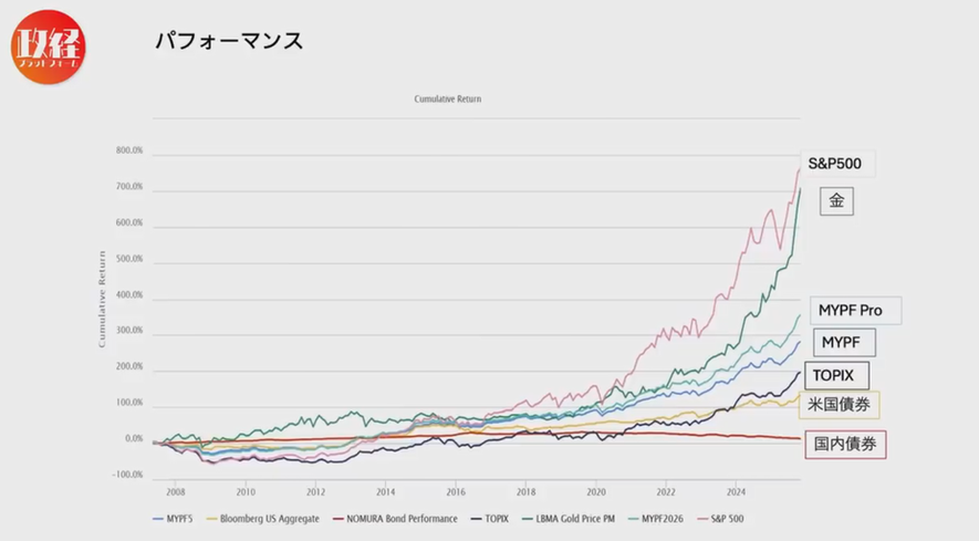 大井先生の現在のポートフォリオは、日本株、日本の債券、アメリカ株、アメリカの債券、そして金という構成でしょうか?