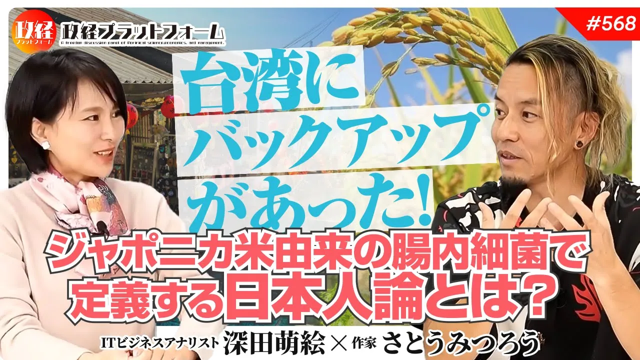 台湾にバックアップがあった!ジャポニカ米由来の腸内細菌で定義する日本人論とは? さとうみつろう氏 #568 公開済み 2026年1月13日 · 更新済み 2026年1月14日 【ご視聴はここをクリック】 【目次】00:00 1.オープニング00:38 2.台湾に台風が増えた理由04:17 3.台湾には日本の古き良き心が残っている08:52 4.中国から見た日本と台湾09:46 5.台湾から沖縄への移民主流説は学術的に否定されている11.28 6.台湾の近代史14:51 7.日本が台湾と親しい感じがする理由16:39 8.動物は植物から操作されてる?