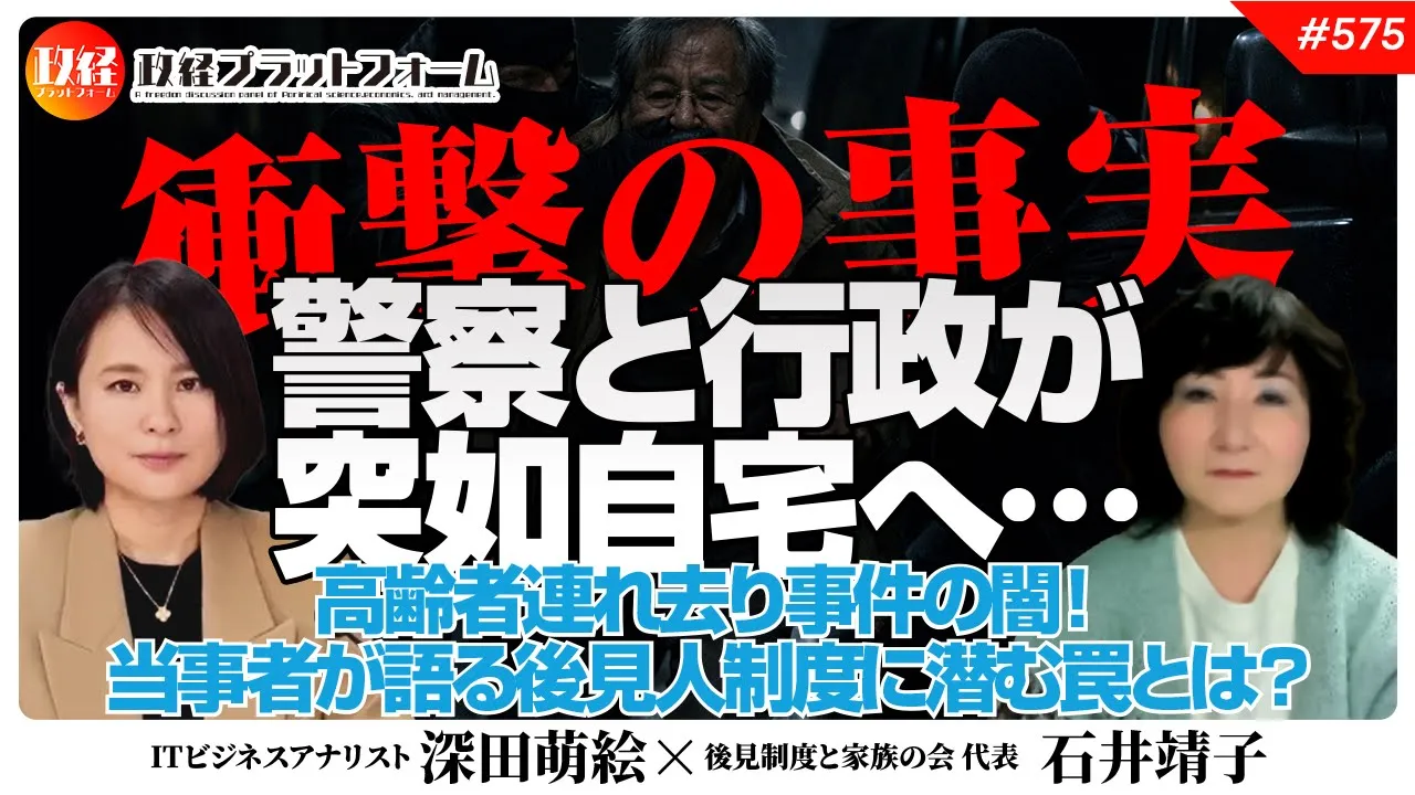 【衝撃の事実】警察と行政が突如自宅へ…高齢者連れ去り事件の闇!当事者が語る後見人制度に潜む罠とは? 石井靖子氏 #575 公開済み 2026年1月20日 · 更新済み 2026年1月20日 【ご視聴はここをクリック】 【目次】00:00 1.オープニング00:44 2.後見制度を悪用した高齢者の連れ去り問題が増えている04:30 3.江東区での高齢者連れ去り事件19:57 4.地域包括支援センターには注意が必要かもしれない