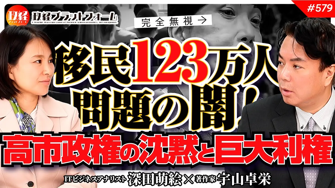 【完全無視?】移民123万人問題の闇!高市政権の沈黙と巨大利権の正体とは 宇山卓栄氏 #579 公開済み 2026年1月24日 · 更新済み 2026年1月24日 【ご視聴はここをクリック】 【目次】00:00 1.オープニング00:37 2.高市政権が進める移民123万人の内訳06:59 3.特定技能2号の家族帯同条件で、移民は激増する10:26 4.移民の数量規制は必要11:35 5.文化、習慣、公衆衛生意識の違いによるストレス13:31 6.国防動員法の国からの移民は国の転覆を招きかねない14:14 7.検討すべき国籍要件や政策17:11 8.日本人には重税、外国人の徴税には甘い政府19:27 9.必要な対策は数量規制・強制送還・国籍要件の制限の3つ