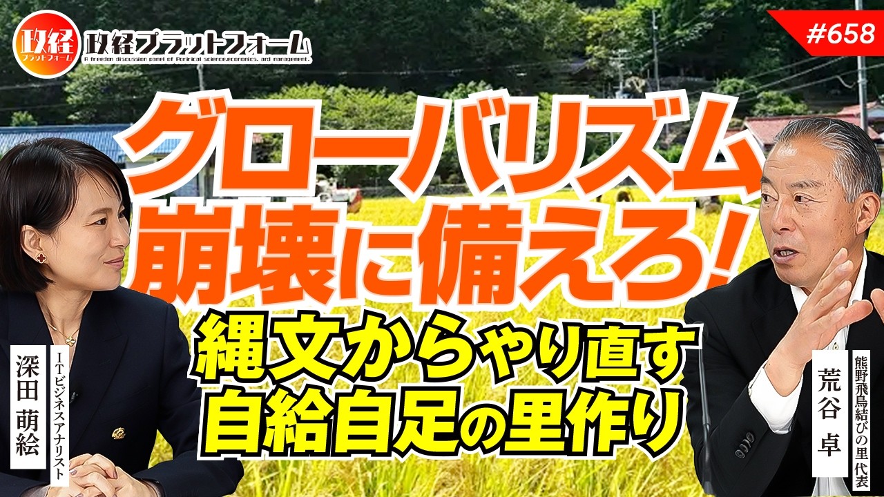 【国土再建】グローバリズム崩壊に備えよ!荒谷卓が語る「縄文からやり直す」自給自足の里作り 荒谷卓氏 #658 公開済み 2026年4月15日 · 更新済み 2026年4月15日 【ご視聴はここをクリック】 【目次】00:00 1.オープニング00:39 2.グローバリズムが破綻した後の社会再生を考える06:09 3.お金の徴税がある限り、完全自給自足・独立はできない07:38 4.理想の社会作り、まずは農地を耕せ11:15 5.荒谷卓氏が熊野の地で開拓を始めた理由14:58 6.荒谷卓氏が始めた「むすびの里」から広がる生活圏の場