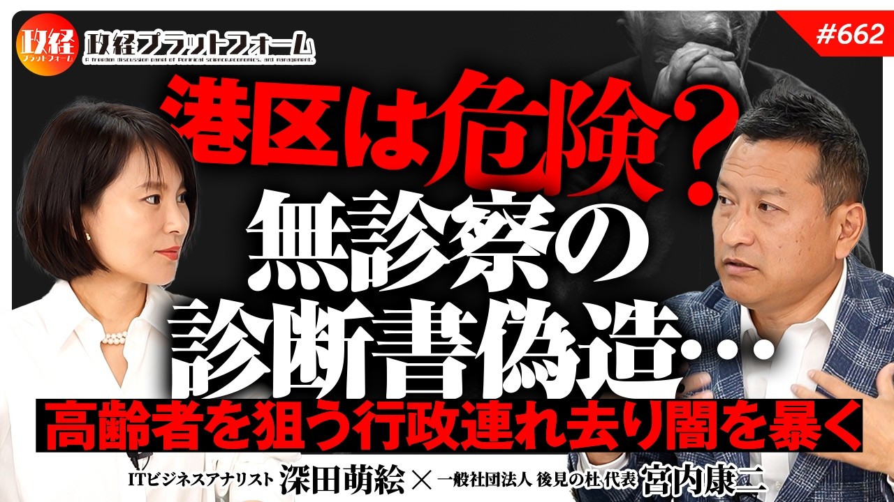 【衝撃の事実】港区は危険?無診察の診断書偽造…高齢者を狙う行政連れ去り闇がヤバすぎる! 宮内康二氏 #662 公開済み 2026年4月19日 · 更新済み 2026年4月19日 【ご視聴はここをクリック】 【目次】00:00 1.オープニング00:38 2.診断書を捏造する病院07:17 3.港区の土地持ち高齢者からの刑事告訴08:27 4.被後見人による国家損害賠償請求の準備18:38 5.イギリス籍女性による国の提訴の実例26:31 6.日本人は家庭裁判所から家族を守ろう